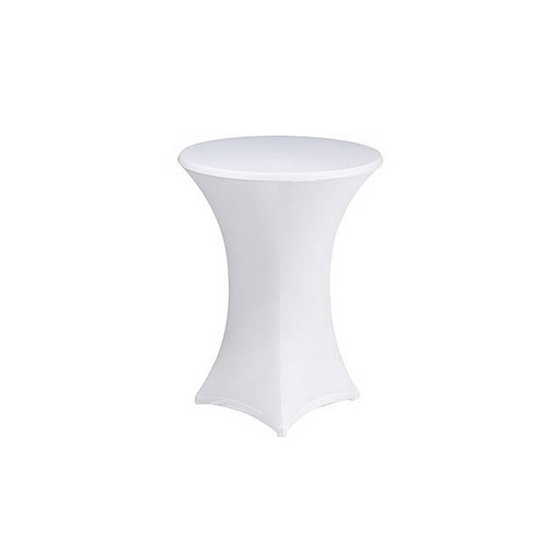 Lunch Service Location, spécialiste de la location de matériel au Pradet 83220 dans le Var, propose des housses en lycra blanches pour mange-debout modernes pour vos réceptions prévues près du Pradet dans le Var.